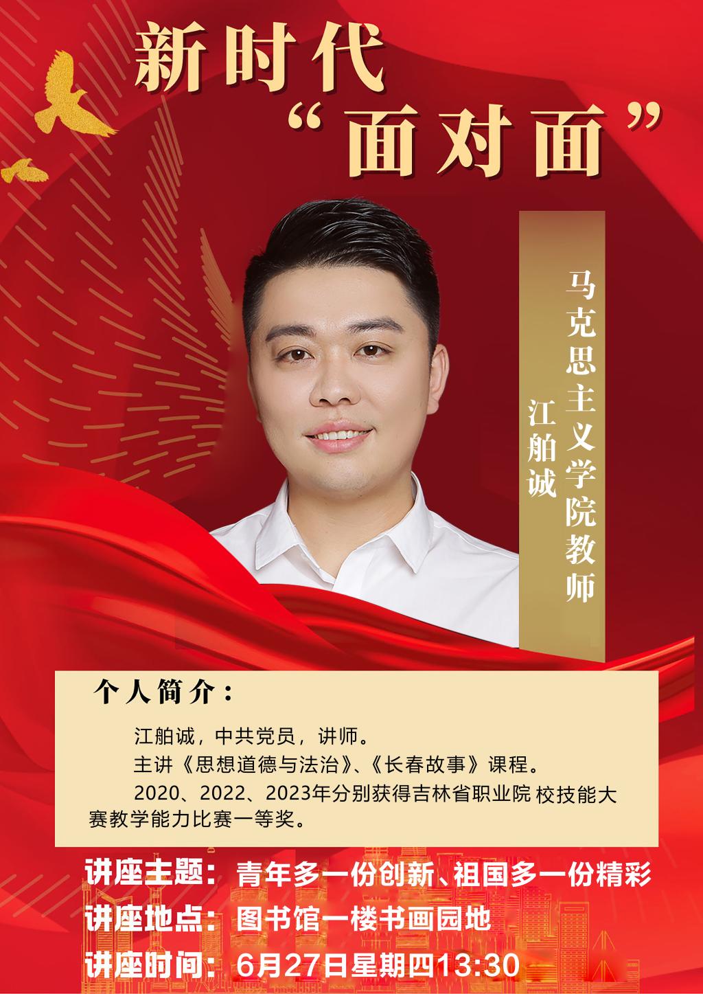 6月27日下午,第三场讲座“青年多一份创新、祖国多一份精彩”在图书馆书画园地举办,由思想道德与法治教研室江舶诚老师主讲。江老师从科教兴国入手,以中国制造、实体产业发展为主要内容,分析了国家对高技能人才的重视,从国家政策方面给学生解读高职院校高技能人才未来发展前景,为我校毕业生就业做很好的指引。本次讲座即便是在期末备考期间,学生仍然很有热情,讲座结束学生围着江老师不断提问,师生之间有问有答谈笑风生,创造了良好的学习氛围。
