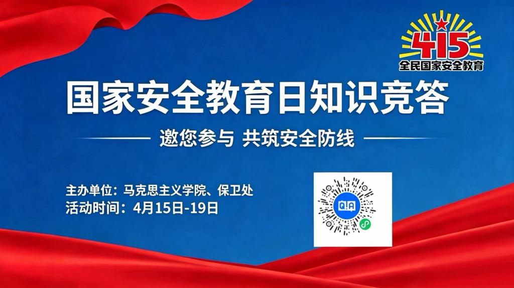 为深入学习贯彻总体国家安全观,提升全校学生国家安全意识与法治素养,在第十一个全民国家安全教育日来临之际,马克思学院立足立德树人根本任务,牵头组织开展为期一周的国家安全知识线上竞赛活动,以“以赛促学、以学促行”推动国家安全教育入脑入心、落地生根。
